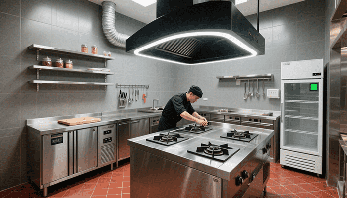 后厨按“洗菜区-切配区-烹饪区-出餐区”单向动线布局,避免交叉污染;地面做1.5%坡度,设排水地漏,墙面贴304不锈钢板(高度≥2.2米),耐油污且易清洁;烹饪区装大功率排烟系统(排烟量≥6000m³/h),烟罩边缘设挡油板,管道定期清理口;冷藏柜、冷冻柜按食材类型分区,温度分别控制在0-4℃、-18℃以下,柜面贴标识方便取用。