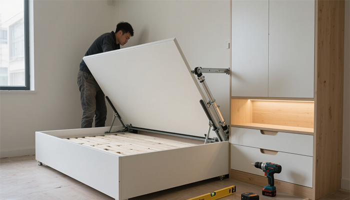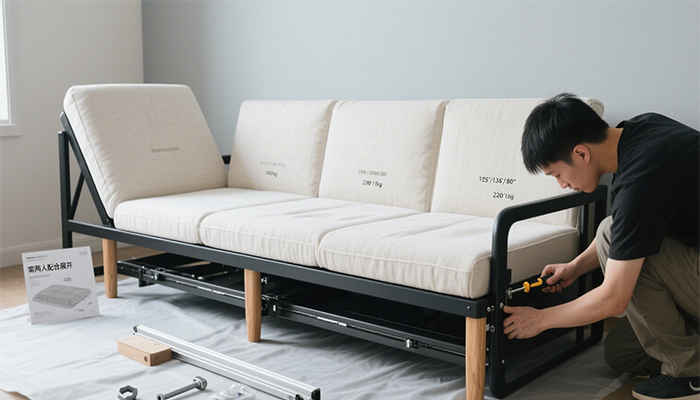 选对床的类型:临时使用选“沙发床”(展开为床,收起为沙发,单价1500-3000元),兼顾坐卧功能;长期使用且空间小,选“壁床”(嵌入墙面,白天收起隐形,晚上放下睡觉,需提前预留墙面空间);若空间足够,选“低矮床架”(床架高度≤40cm,视觉上显轻盈,不压抑空间),避免高箱床(占空间且显笨重)。
