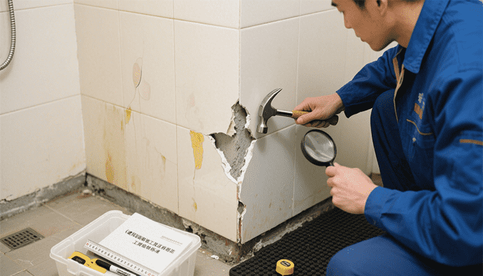 基层问题(占比60%):基层未清理干净(残留灰尘、油污),或未做找平(平整度误差>3mm),导致粘结材料与基层附着力差;卫生间、阳台基层未做防水或防水失效(潮气渗透,破坏粘结层),也会引发空鼓脱落;