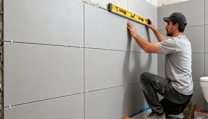 吸水率高的瓷砖提前泡水2小时(捞出沥干表面水分),墙面/地面均匀涂抹瓷砖胶(厚度3-5mm,满涂不空鼓);